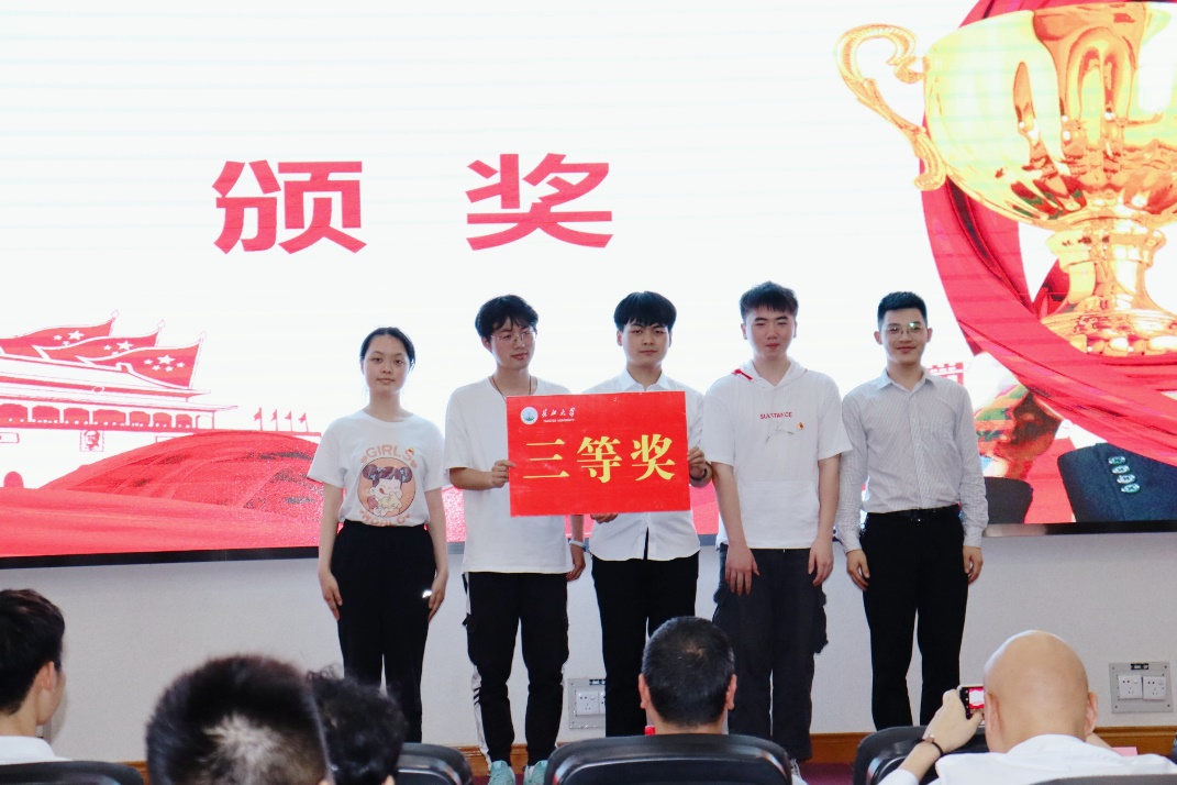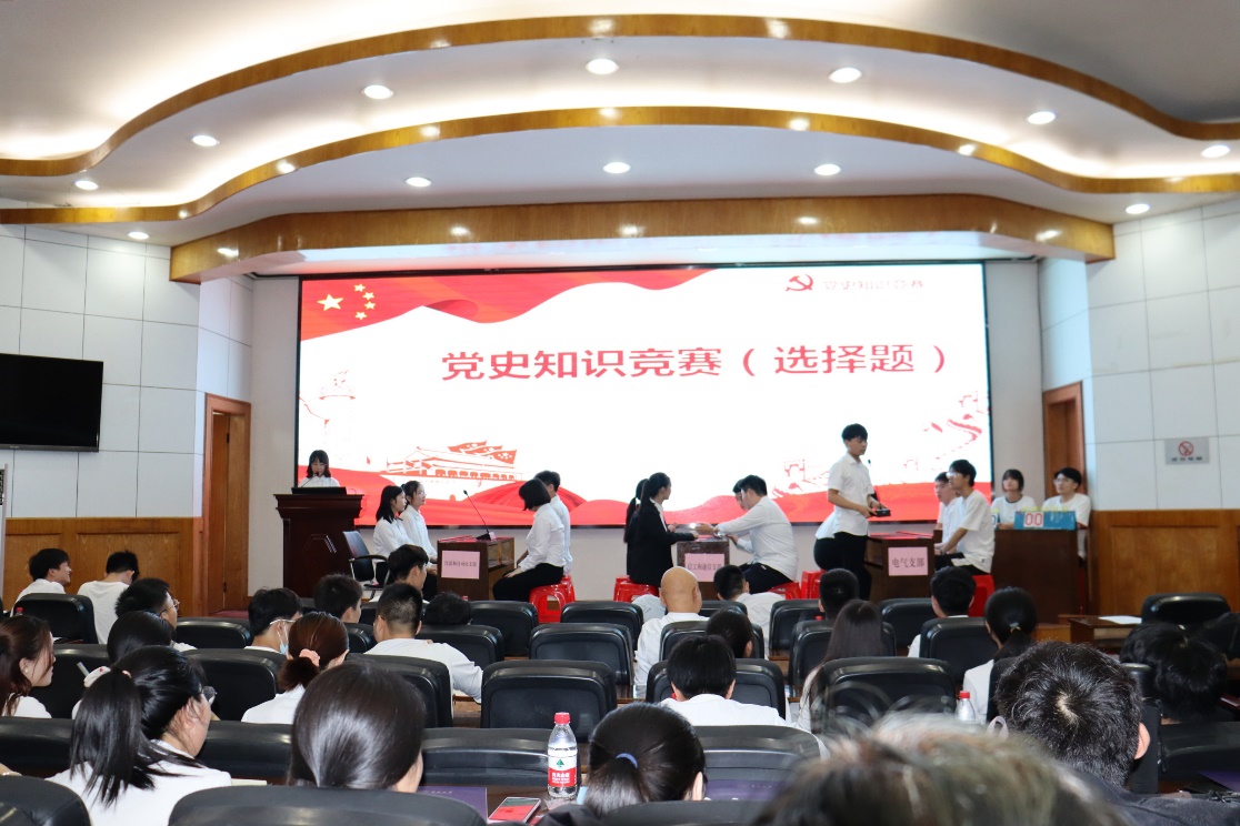 党史知识竞赛环节,由3个支部派出的12位同志共同抢答50道党史题目。凭着对党史的充分了解,12位同志反应迅速、抢答不断,以快和准的方式为大家展现了一场激烈的党史知识较量,赢得了台下的阵阵掌声。快问快答环节,不仅台上选手抢答激烈,台下各支部人员也纷纷抢答,展现出各自深厚的党史知识储备。经过两轮环节的较量和比拼,信工和通信支部赢得本次比赛一等奖,仪器与自动化支部和电气支部分别获得二等奖、三等奖。3位老师为各个支部颁奖后,党委副书记郭启炜发表总结。