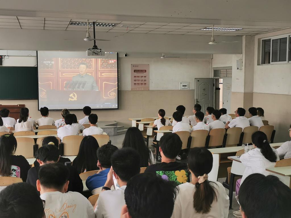 全体学生党员在12教104观看庆祝中国共产党成立100周年大会,共同见证中国共产党成立100周年这一伟大的时刻。