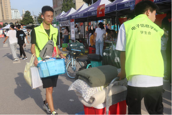 志愿者在南门、迎新点、学生宿舍三点一线,荧光绿的身影充斥着整条街道。一路上,志愿者引导新生报到、帮忙搬运行李、解答新生的各类疑惑,让初入长大的他们感受到一个热情的长大、安全的长大、温暖的长大、智慧的长大以及惊喜的长大。在志愿者的帮助和陪伴下,新生们展露出笑容,与志愿者有说有笑,对未来的大学生活满怀憧憬。辛苦每一位无私奉献的志愿者们,是他们的努力让新生感受到了属于电信工口漫画