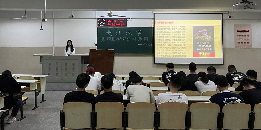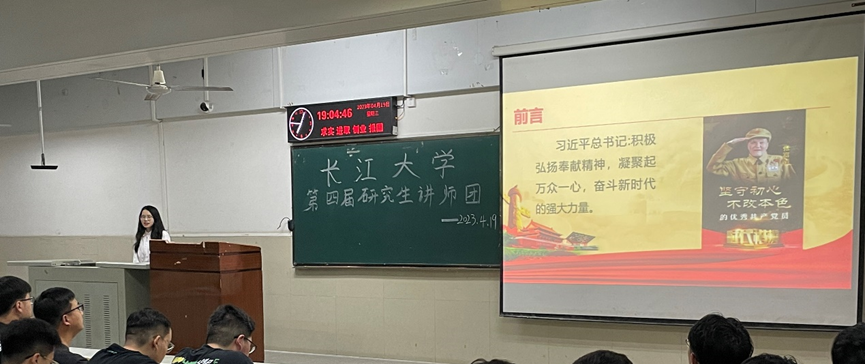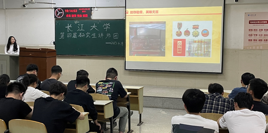 的主讲人文芬琴同学通过引入 “时代楷模”张富清同志的故事呼吁新时代青年“坚守初心,不改本色”、“学习榜样,建设祖国”。