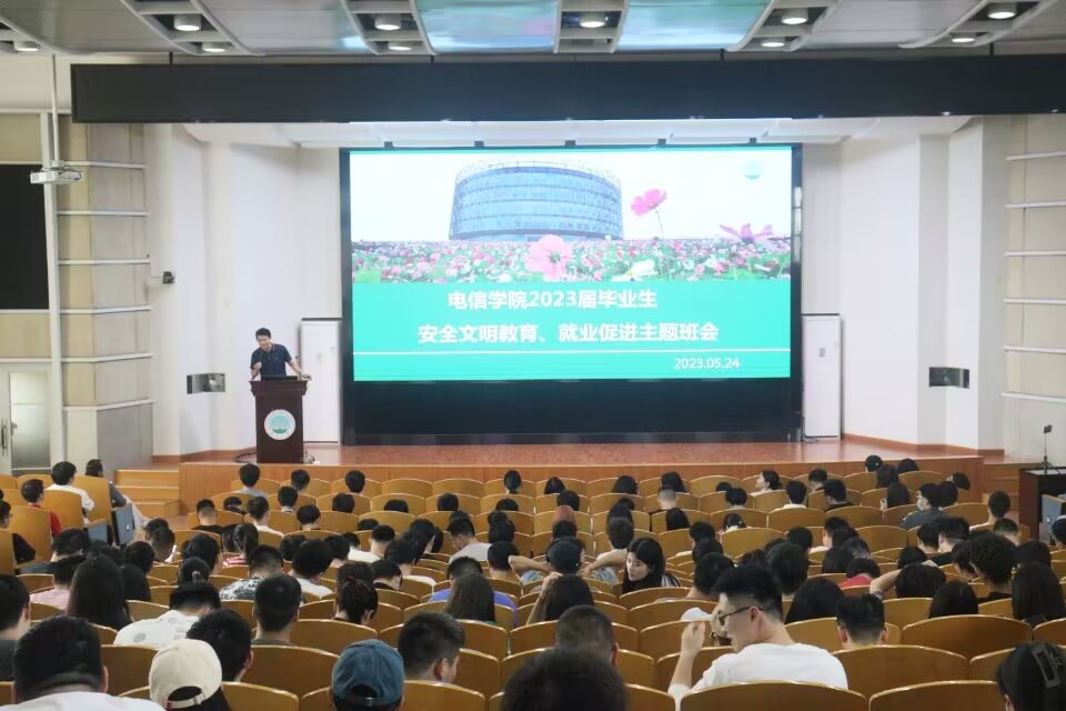 在12教405会议室召开2023届毕业生安全教育大会。学工办主任、2023届辅导员颜国琼、就业专干王齐禄、兼职辅导员尚玉豪及2023届全体毕业生参加会议。