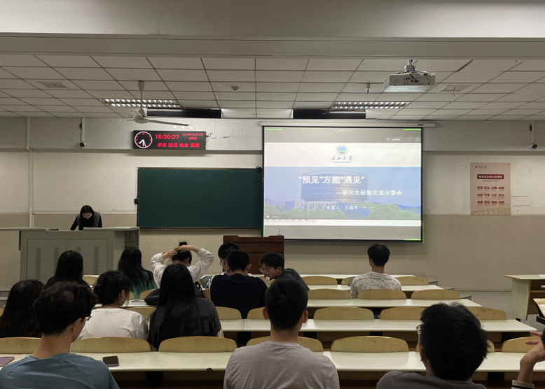 王路平同学为大家分享的主题是“遇见,方能遇见”,她从个人介绍、研究生三年规划、论文经验分享、比赛经验分享、心得体会这五个方面向研一同学充分的诉说了她三年读研生涯的经历,她讲述的经历为在座的同学们避坑以及做好时间规划,警戒同学们找好方向、把握机会。