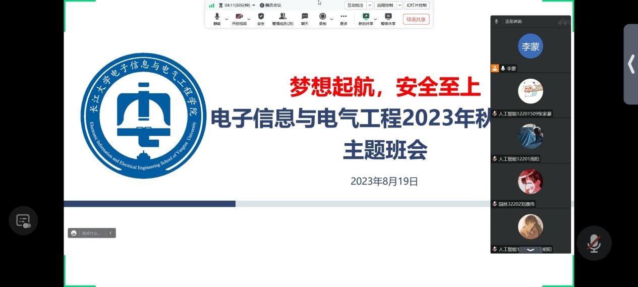 本次班会主要围绕以下三个方面开展,一是针对老生传达新学期教育教学事项,包括返校时间安排以及学费缴纳等;二是返校前安全教育,包括防溺水、防诈骗、大学生“禁酒令”等;三是针对2023级新生,讲解线上报到流程及注意事项等内容。