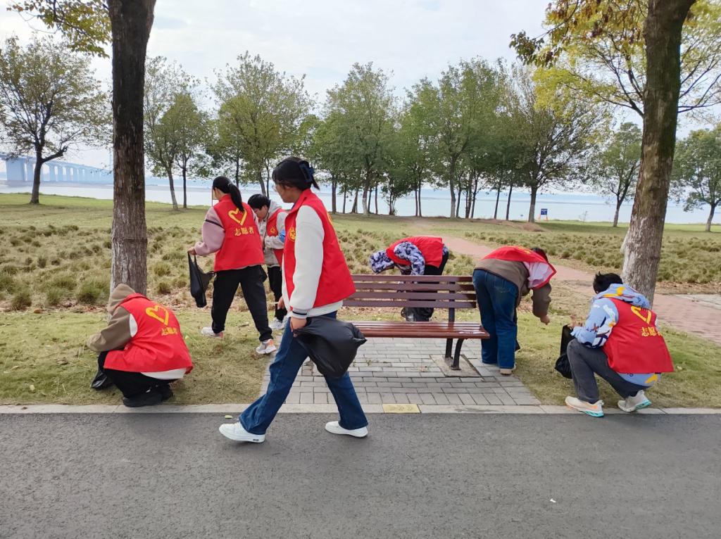 组织对滨江公园环境进行改善,清理路面上和草地上游客市民留下的塑料袋、烟头及其他杂物,为荆州市民创造一个优美卫生的公园环境,为文化传承尽自己的心力。