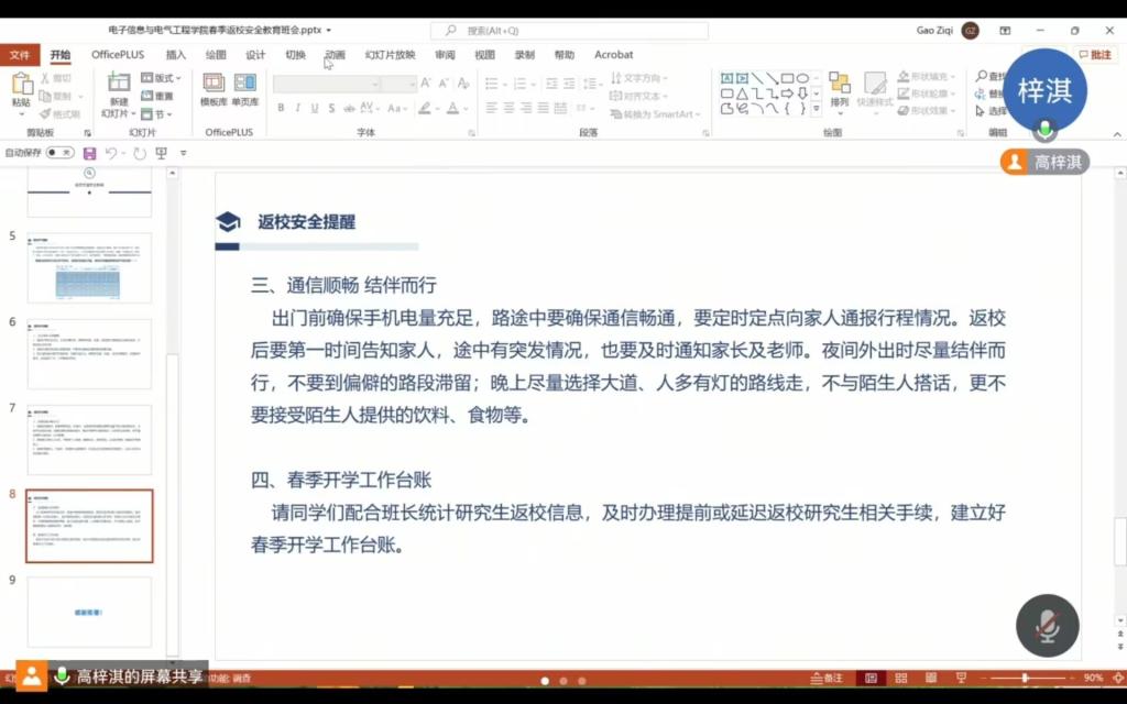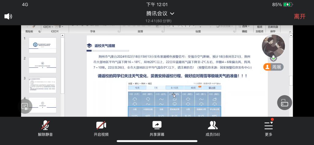 为做好2024年春季开学工作,确保学生安全、有序返校,工口漫画 于2月20日组织全体研究生召开了春季安全返校教育主题班会。 会上,辅导员康玮传达了学校有关春季开学学生返校工作会议精神,对提前返校、延迟返校学生申请审批手续办理、学生返校行程安排报告等事项提了要求,重点提醒学生关注天气变化,妥善安排返校行程,做好应对雨雪等极端天气的准备,并开展了返校交通安全专题教育。 通过此次主题班会,明确了同学们对当前返校手续的要求,提升了同学们返校途中的安全意识。 (审核 张晨露 编辑 颜国琼)