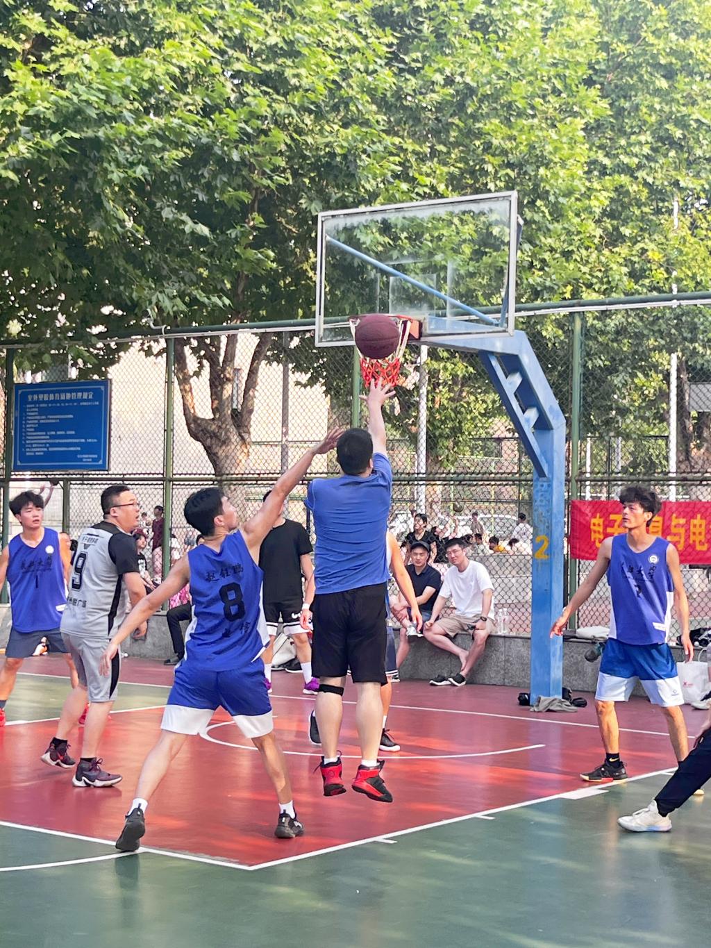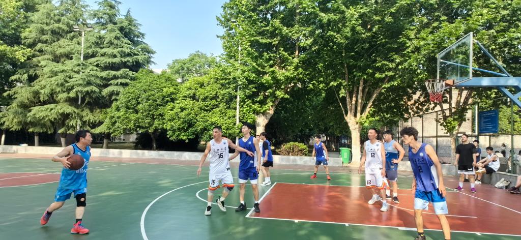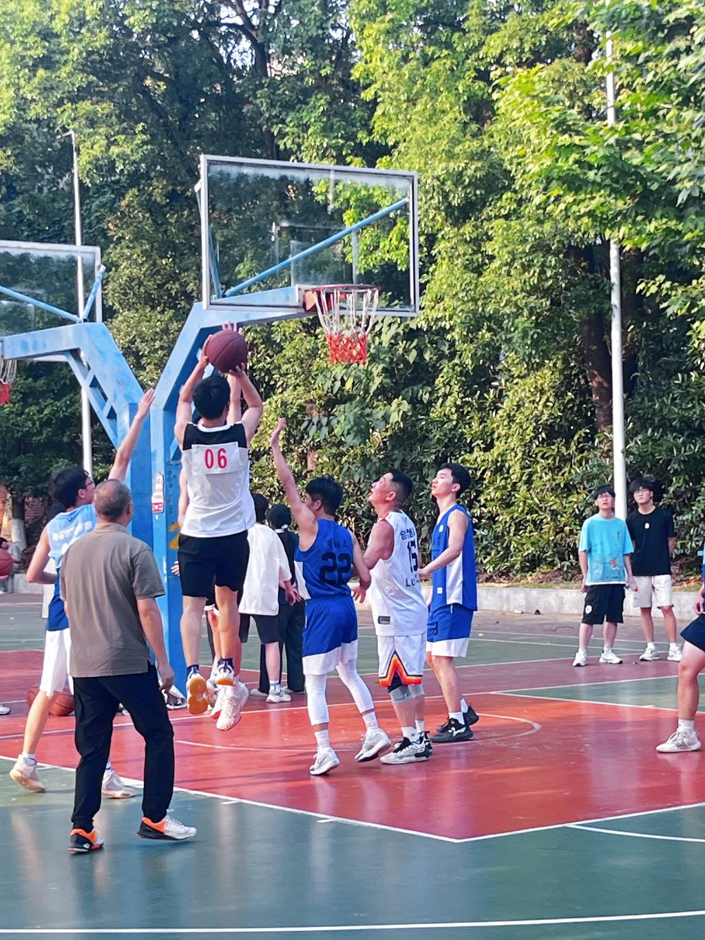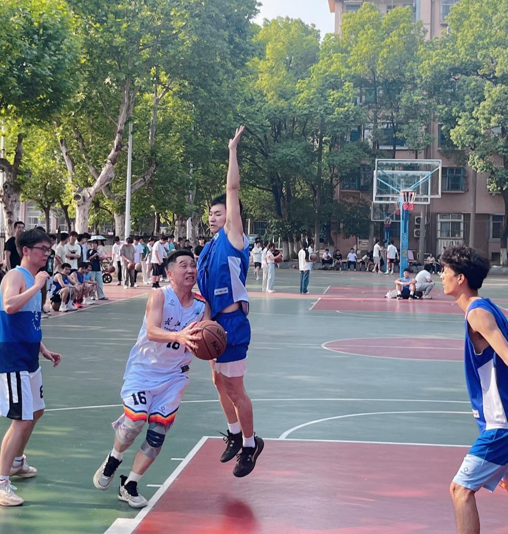 教职工代表队和毕业班学生代表队在东校区灯光球场进行了一场精彩的角逐,比赛还吸引了副校长江厚顺和其他老师前来助战。