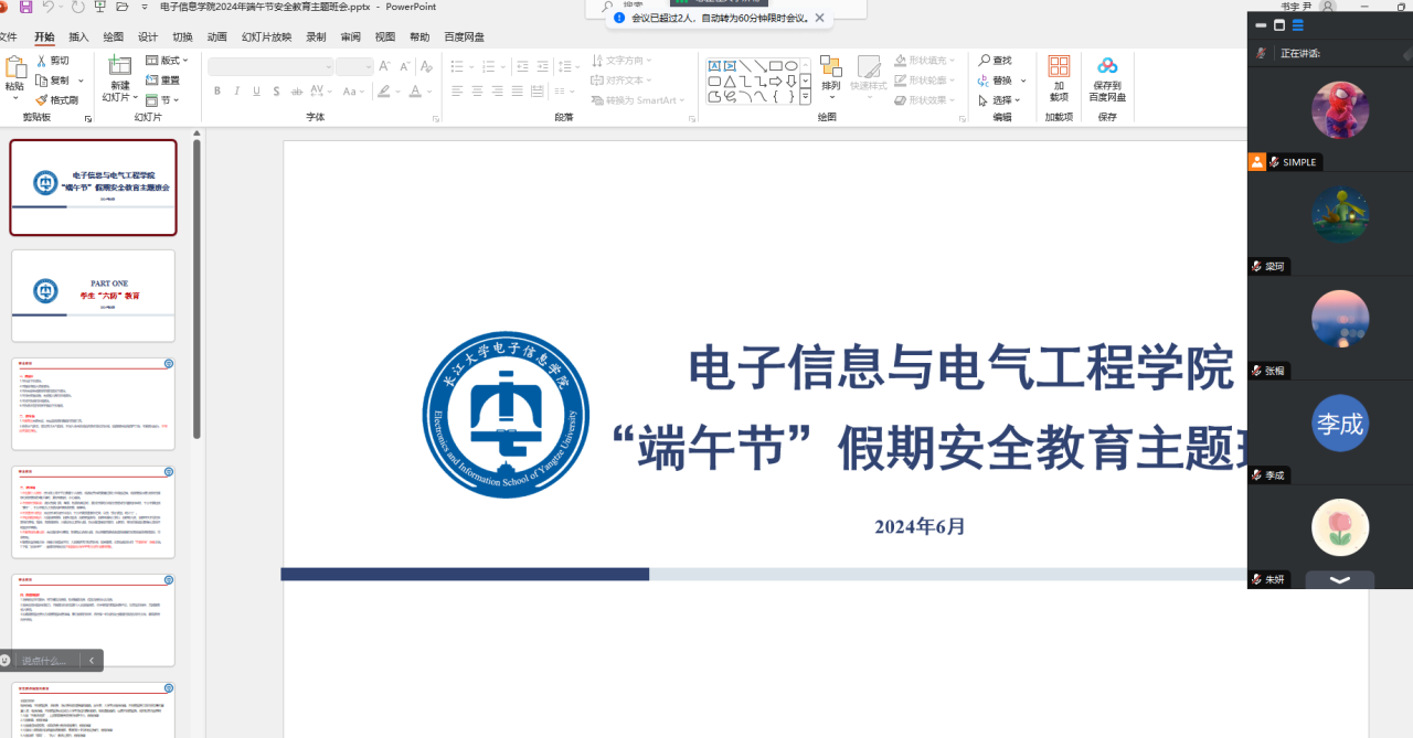 于6月4日组织全体研究生开展了端午节假期安全教育主题班会。