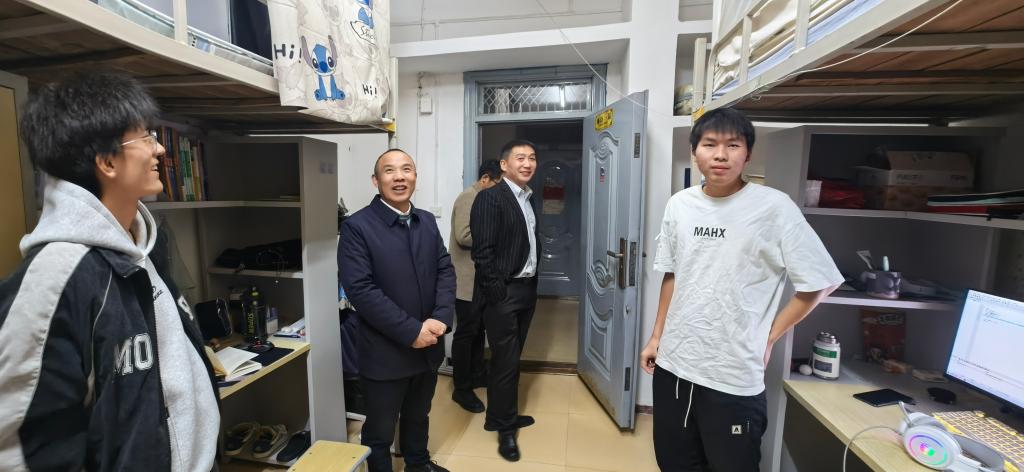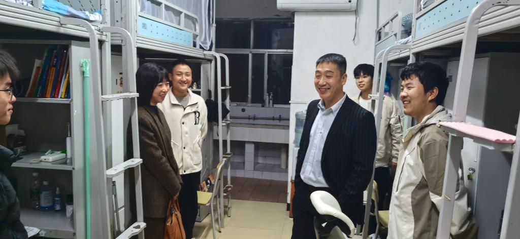 院长罗明璋、党委副书记张晨露在年级辅导员朱锐老师的陪同下到学生宿舍看望慰问学生。