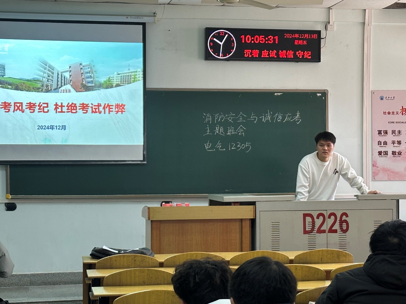 于12月8日-12月14日组织召开了学生消防安全和考试诚信教育的主题班会。