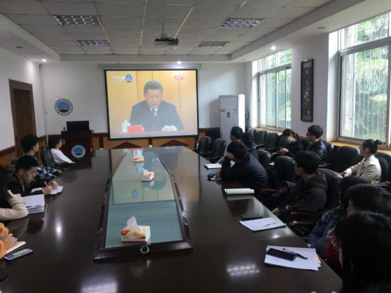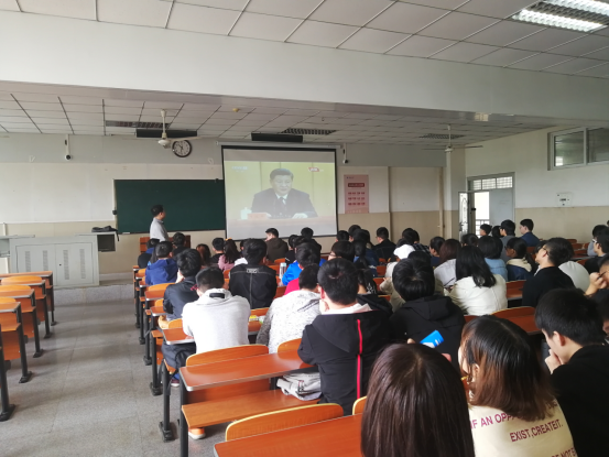 组织学习小组、无课学生集中观看纪念五四运动100周年大会。