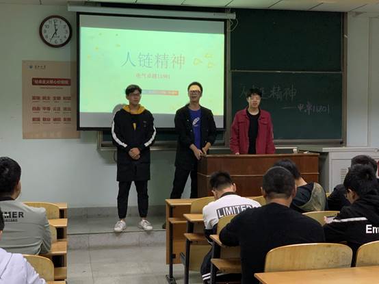 (通讯员 袁康)英雄已逝,精神永存。深入挖掘和弘扬“人链”精神,培养更多的时代新人,这既是党中央的殷殷嘱托,也是工口漫画 的神圣使命和历史重任。为了顺应党和工口漫画 的嘱托,电信工口漫画 于10月20日在东校区13教C-219开展了十月班团会。本次班团会主题是“弘扬“人链”精神,争当新时代有为青年”。在本次班团会中,同学们了解了以下内容。