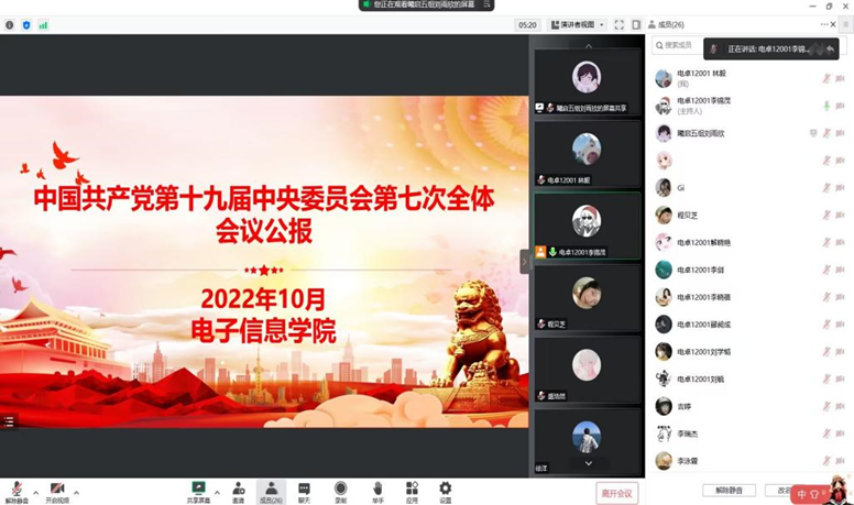 学习结束后,同学们纷纷发表自己的学习心得。电信12202班的韩艺昕表示:“看了十九届七中全会报告,一种幸福感和安全感从心底油然而生,作为新时代青年,我愿燃烧青春,为祖国建设添砖加瓦,为民族复兴贡献力量!”仪器12201班的刘雅欣也说:“会上习近平总书记所作的重要讲话高屋建瓴,让人深受鼓舞、深感振奋、深受教育。”