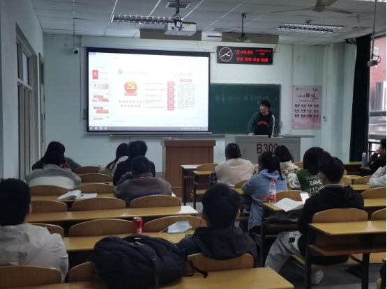 4月26日下午,人工智能12101团支部在12503举行班团会。在班团会上,同学们学习了学习贯彻习近平新时代中国特色社会主义思想主题教育工作会议内容,程卓玲同学用融媒体、沉浸式讲述等多种展现形式介绍习近平新时代中国特色社会主义思想,并开展总体国家安全观宣传教育活动,明确广大青年应当毫不动摇坚持和巩固党的领导地位和执政地位,最后,她还介绍了“青年大学习”网上主题团课学习,督促同学们响应国家号召,积极参习,并建议大家多多参加社会志愿活动,多为社会做事,为国家做事。