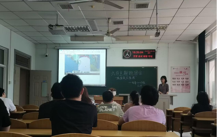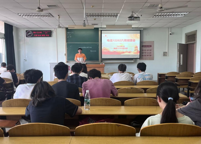 6月21日上午,电信类12202团支部在13教D221教室举行班团会。郭懿莹同学带领支部团员和青年们学习习近平总书记给参与“澳门科学一号”卫星研制的澳门科技大学师生代表的回信精神,向大家介绍了习近平总书记给上海市虹口区嘉兴路街道垃圾分类志愿者回信精神。她动员广大青年共同参与生活垃圾分类,践行绿色低碳、文明健康的生活理念和生活方式,推动垃圾分类切实成为校园低碳生活新时尚,她呼吁青年学生积极成为环境保护的志愿者、实践者和环保行动的宣传者和推动者。