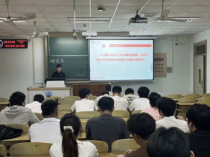 随后,同学们学习了《求是》杂志发表的习近平总书记重要文章《激励新时代青年在中国式现代化建设中挺膺担当》。文章深入阐述了新时代青年的历史使命和奋斗目标,鼓励广大青年要坚定理想信念、练就过硬本领、勇于担当责任,在推进中国式现代化的伟大进程中贡献青春力量。