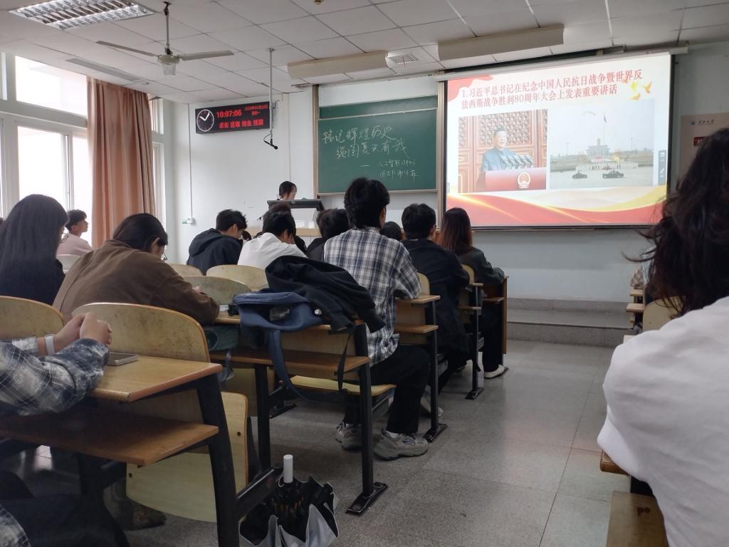 围绕“铭记辉煌历史,强国复兴有我”主题开展示范性主题团日活动。活动结合学习习近平总书记重要讲话和重要指示批示精神、“节粮、节水、节电”主题实践、就业引航专题活动三大核心模块有序推进,切实强化团员思想引领与实践意识。