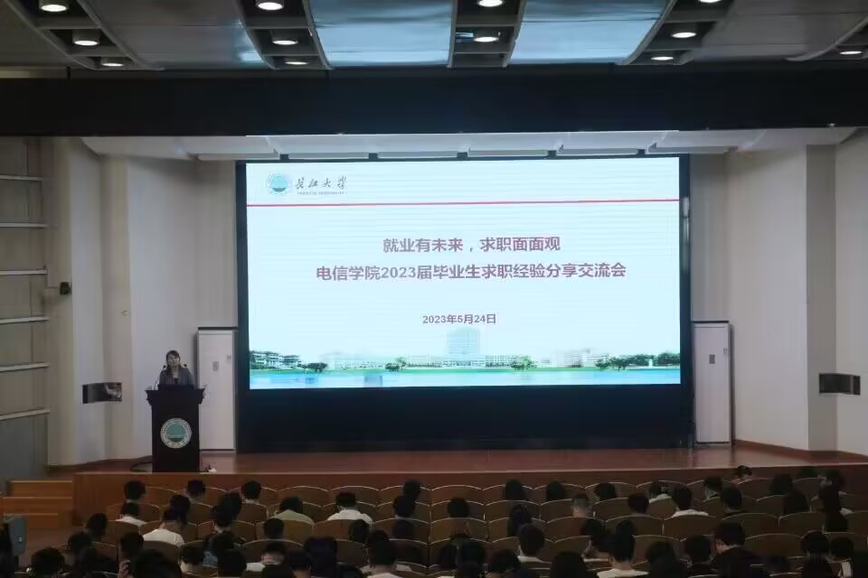 于5月24日下午召开了“就业有未来,求职面面观”毕业生求职经验分享交流会。本次大会由颜国琼老师主持,并邀请了优秀毕业生代表黄子逸为大家宣讲。