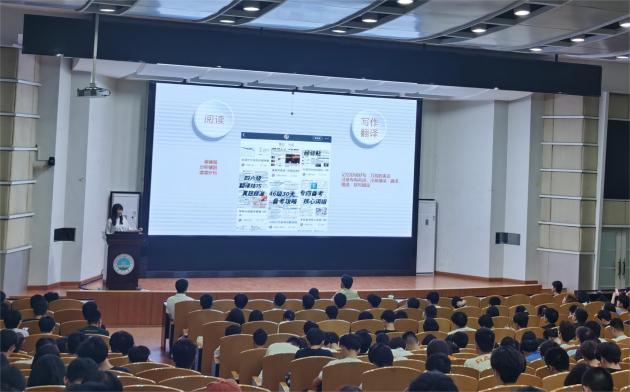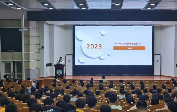 本次大会还邀请了优秀学生代表2021级程卓玲进行英语学习经验分享会。交流会上,程卓玲同学主要从考前准备的多个方面展开,建议同学们把握好剩下的两个月时间,制定好计划。她向同学们推荐了在B站上寻找学习资源,随后系统地介绍了各部分的做题技巧和训练方法,并建议同学们利用好课外时间,注意积累词汇,提高课外阅读量,以提高自身的英语能力。最后,程卓玲同学提醒同学们要找到适合自己的做题方法,并预祝同学们在四六级考试中取得好成绩。