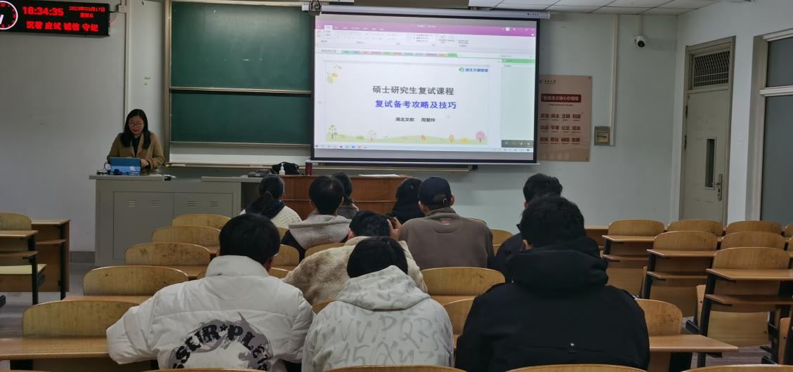 邀请文都考研名师在13教C117开展考研复试指导,针对考研上线学生的疑问集中进行解答指导。