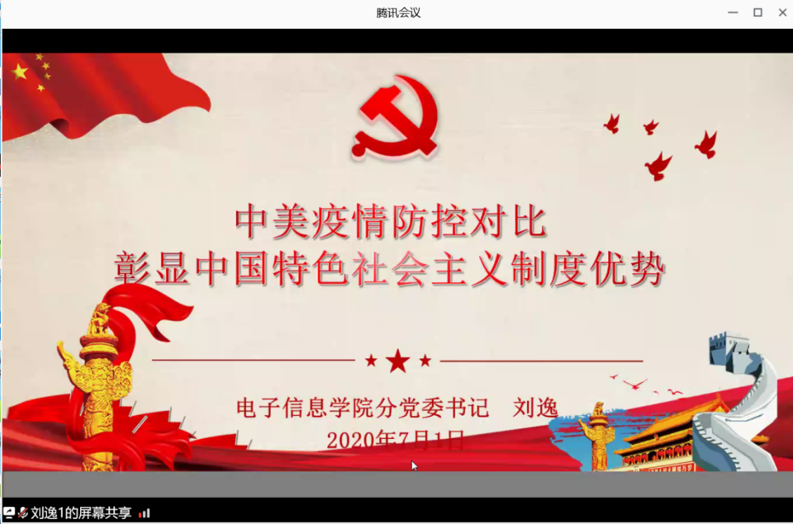202071日上午9点,电子信息工口漫画 通过腾讯会议召开了迎党的生日、讲战疫故事、悟初心使命为主题的党课学习。会议由工口漫画 分党委副书记郭启炜主持,全体教工党员和学生党员参加了此次会议。
