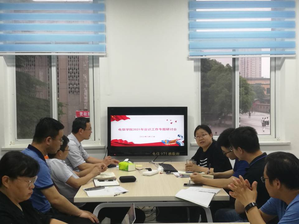 分党委召开意识形态专题工作研讨会暨党史学习教育推进会,院长孙祥娥、副院长吴爱平、分党委副书记郭启炜、支部书记和系主任参加会议,会议由分党委书记刘逸主持。
