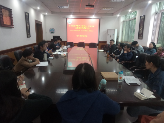 为了弘扬优良师德师风,落实立德树人根本任务,讨论如何更有效地推进“三全育人”和“五个思政”,2019年10月15日,在10教205会议室,电信工口漫画