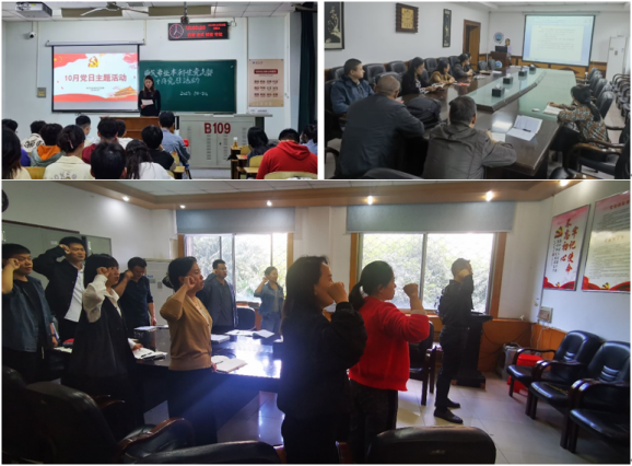 组织师生开展了10月政治理论学习及支部主题党日活动。全体教师进行了政治理论学习,全体党员一起重温了入党誓词、交纳了本月党费、集体诵读党章第八章、聆听了微党课、开展了理论学习。