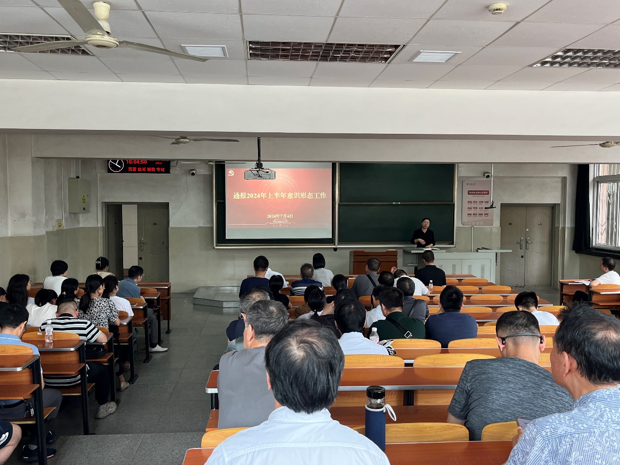 在主教108召开教职工大会,总结上半年工作开展情况,布置暑期重点工作;会上还开展了教职工政治理论学习和警示教育。党委书记郭梅主持会议。