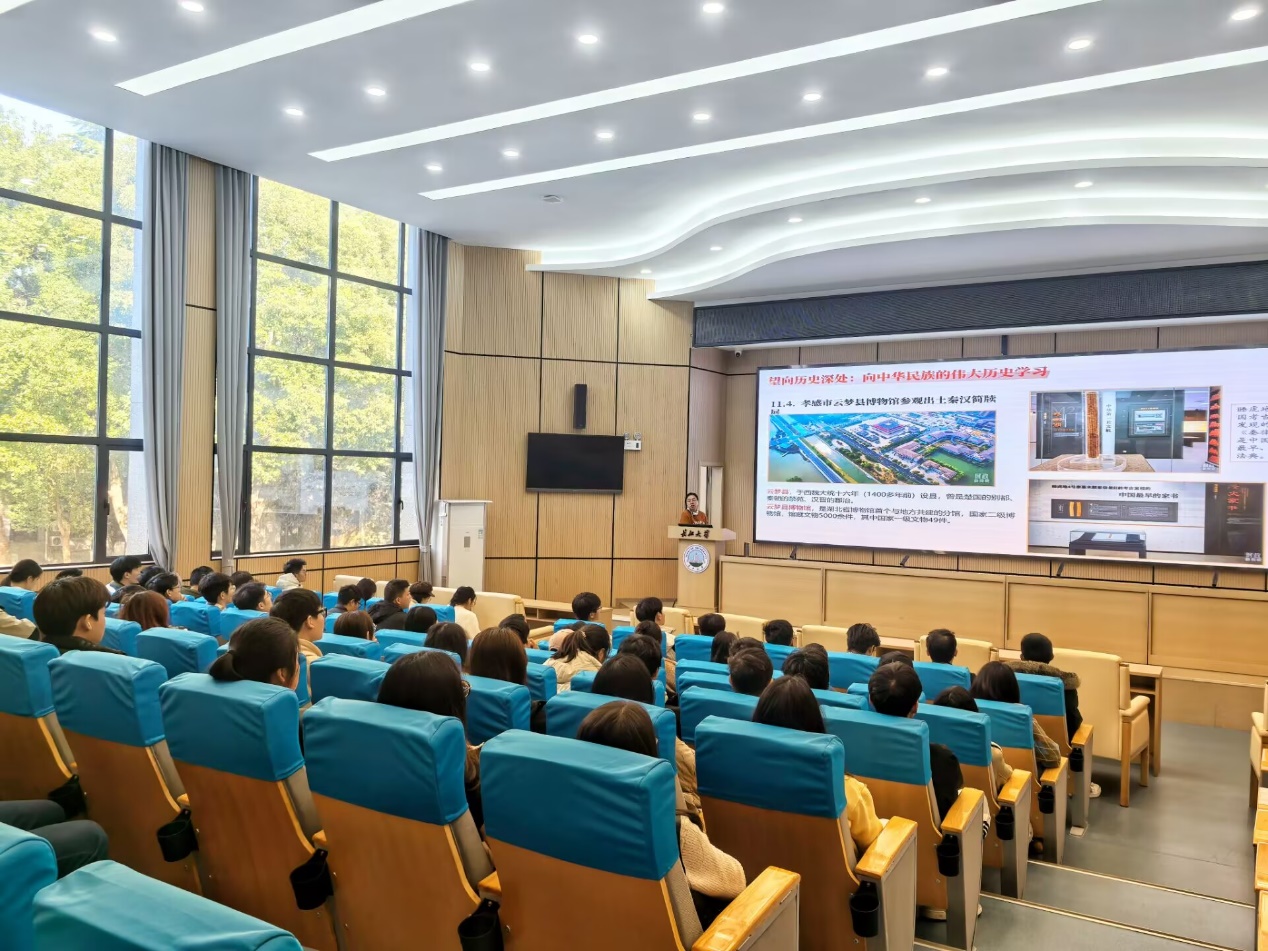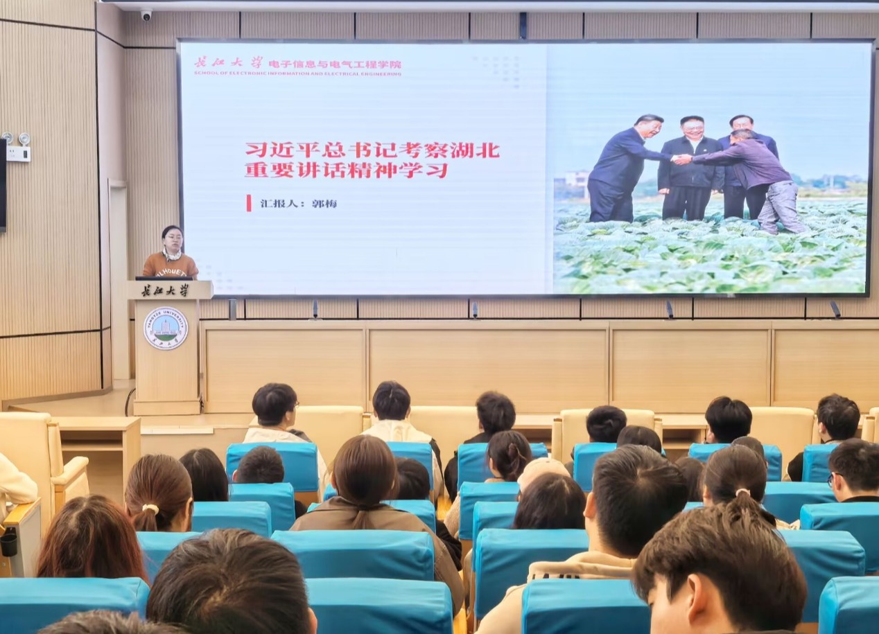 郭梅表示,学习宣传贯彻习近平总书记考察湖北重要讲话精神是当前和今后一个时期的首要政治任务。她要求同学们深刻认识习近平总书记考察湖北的重大意义,坚定捍卫“两个确立”,坚决做到“两个维护”,始终在思想上政治上行动上同以习近平同志为核心的党中央保持高度一致。她勉励同学们要读懂敢为人先的时代意蕴,把握时代的脉搏,正视困难、坚定信心,去开拓、去工作、去战斗,为中国式现代化建设贡献自己的力量。