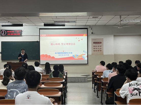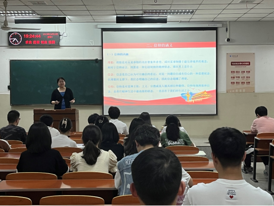 党委开展2023年上半年入党积极分子培训集中授课,党委书记刘逸以“凝心铸魂 坚定理想信念”为题为新发展入党积极分子讲授“入党第一课”,本科生、硕士及博士研究生共74名入党积极分子聆听党课。