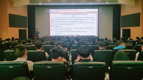 所设立的英语优秀个人奖、英语进步奖、优秀寝室奖和优秀班级奖四个奖项的申请要求和奖励标准。“设立优秀寝室奖和优秀班级奖的目的是希望寝室里或者班级里成绩好的同学,可以带动成绩差的同学学习。”他向同学们解释道。