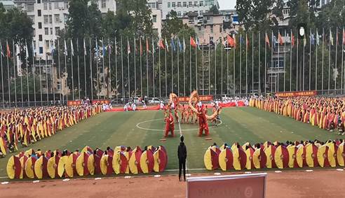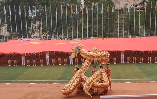 舞龙舞狮作为压轴节目进行了表演,我校龙狮队不负众望,精彩灵动表演的赢得了参会4000余名师生、家长及社会各界人士的阵阵掌声。