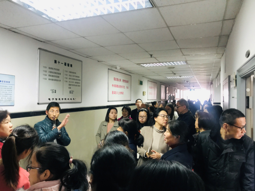参会代表分为两组进行参观,一组由中心吴爱平博士负责带队,由6楼至11楼参观并进行讲解,另一组由中心创新基地李锐博士负责带队,由11楼至6楼参观并进行讲解。中心实验室老师向参会嘉宾介绍了分管实验室的设备运行和维修情况。