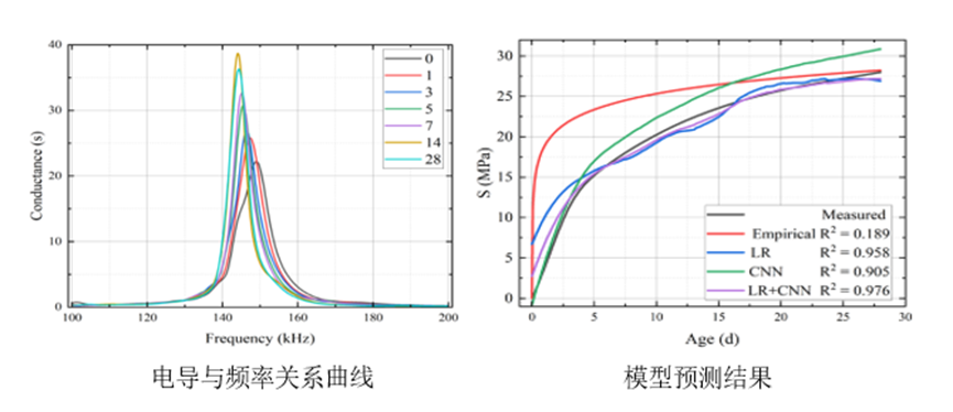 该成果首次将压电阻抗与机器学习相结合的方法应用于早期混凝土的强度监测,并在此基础上开展了数值模拟、实验验证、模型性能指标对比分析以及对其它大型结构的损伤监测意义的分析工作。论文提出了一种预测和监测混凝土强度发展的新方法,其基本思想是使用嵌入式智能骨料(SA),结合机电阻抗(EMI)技术和机器学习来监测早期混凝土的强度发展。首次建立了埋置SA的电磁干扰模型,研究了SA的电导共振频率(CRF)和电导共振峰(CRP)与混凝土强度发展的关系。建立了混合模型(LR-CNN)并且成功验证了该模型的良好性能,在实现对混凝土强度发展的定量预测同时,比较了LR-CNN模型和其他混合模型的性能指标,该方法简单、准确、定量、可靠,具有广阔的应用前景。