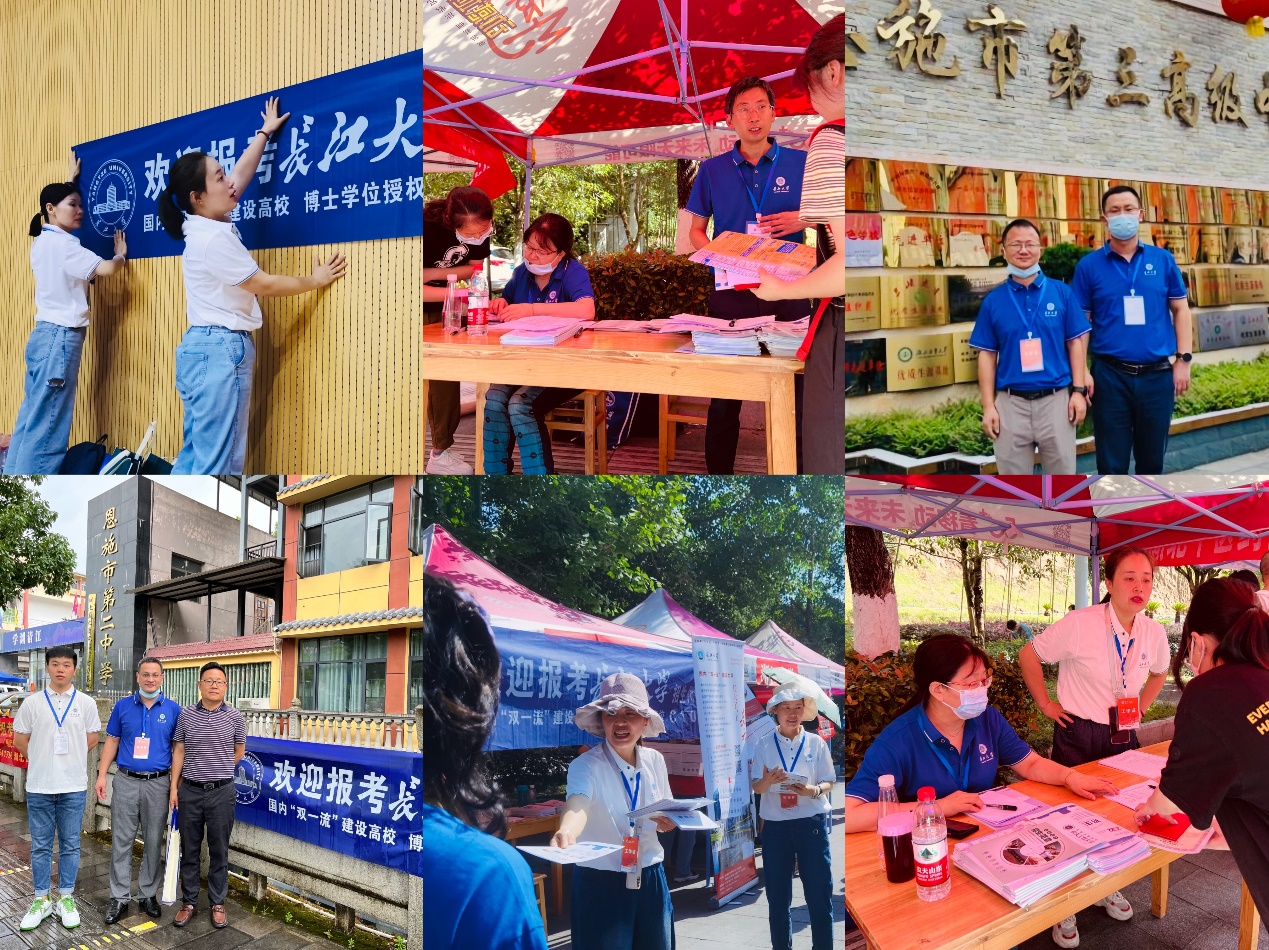 在恩施,各工作小队顶着烈日、冒着骤雨、耐着酷暑奔赴市内6所高中,向广大考生发放招生宣传册等材料,积极宣传我校的办学条件、办学特色、优势和成果,并围绕广大考生和家长关心关注的热点问题进行了耐心解答,如我校本年度招生计划、历年招生分数线、各学科特色等情况;还建立了QQ招生咨询群,在群内分享我校的招生政策等文件精神,设专人负责解答考生及考生家长关于专业报考的相关问题,指导考生和家长进行志愿填报,拓宽了招生宣传覆盖范围和后期效果。