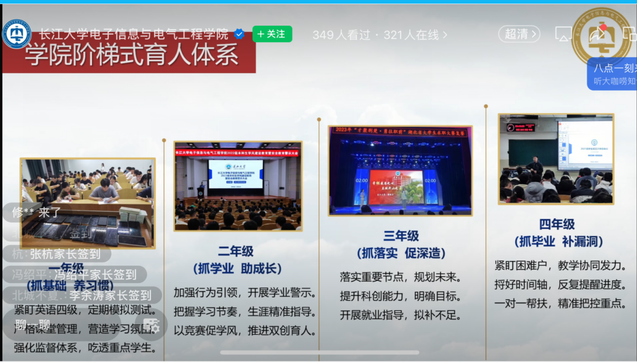 各年级召开了“凝聚教育合力,家校共同育人”线上家长会,每场参与家长近500人,会议由各年级辅导员主持。