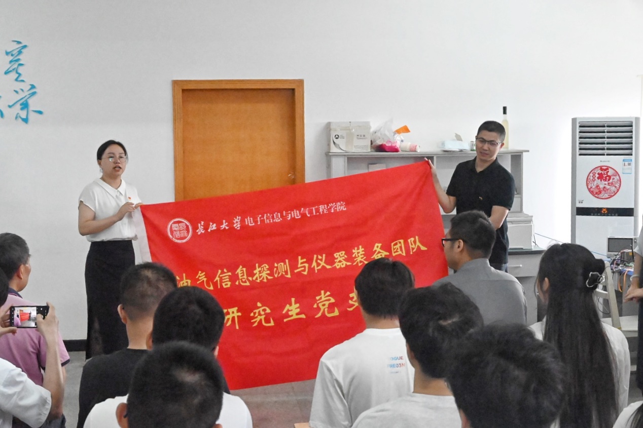 在主教1201-2实验室召开油气信息探测与仪器装备团队研究生党支部成立大会。校党委组织部副部长伍廉松,工口漫画