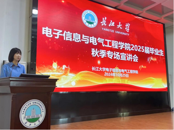 法雷奥汽车空调湖北有限公司招聘负责人首先通过分发宣传册、提问企业的相关数字与同学们进行互动,调动了现场氛围和同学们的活力,同时对工口漫画、业务布局、企业历史、荆州厂址等方面进行介绍,并邀请学校研三在读的李文志学长分享自己的工作经历与心得感悟。其次,详细介绍了企业完善的培训课程、清晰的职业发展路径、有竞争力的薪酬福利、活力满满、多样的员工活动,最后,对招聘事项做了相关提示。