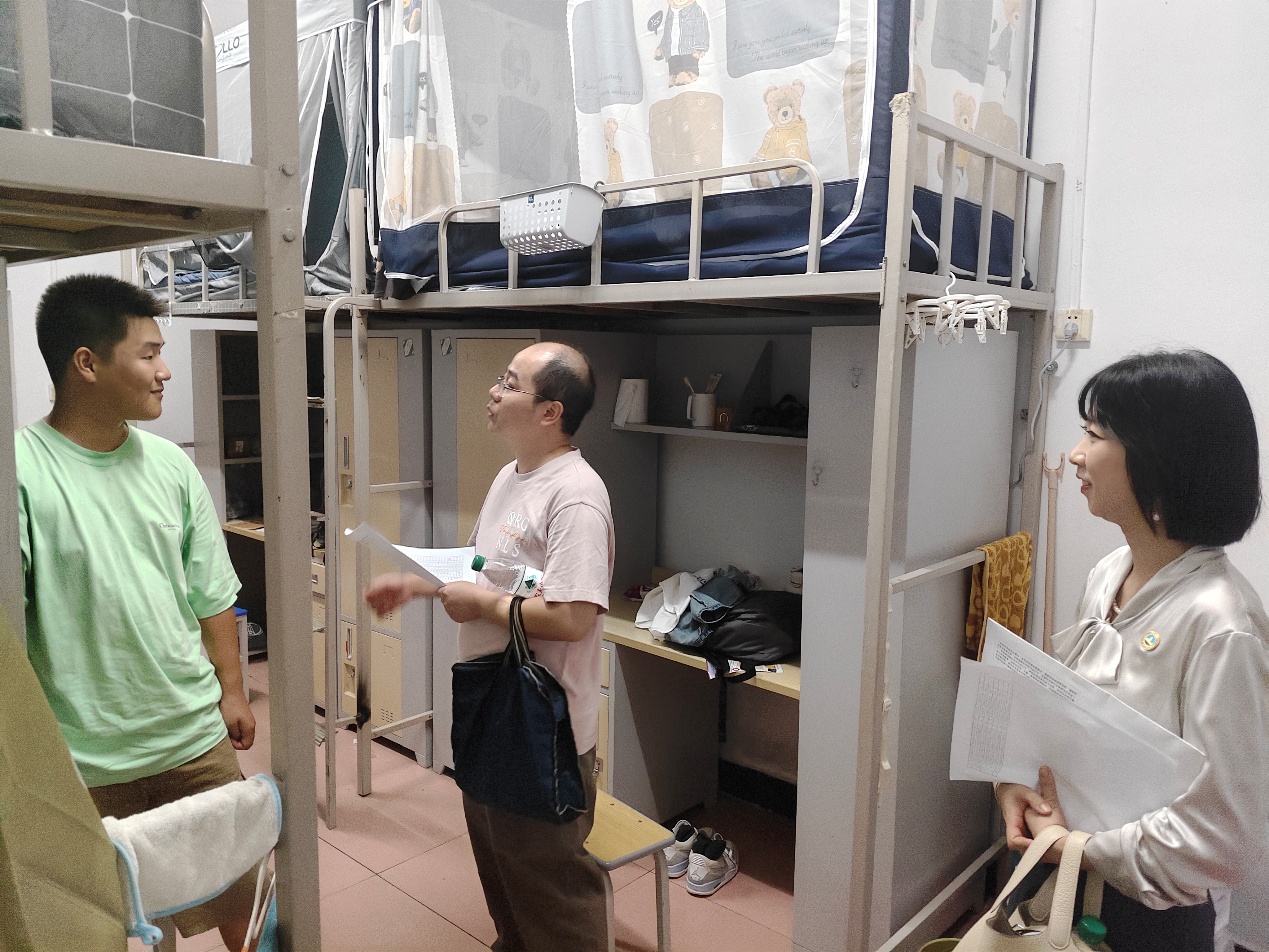 领导、班主任以及辅导员一行深入新生宿舍,走访慰问刚刚安顿下来的新同学。“家乡是哪里的?”“对学校的饮食和住宿还习惯吗?”“生活上有没有什么困难?”每到一个寝室,领导老师们都与新生进行亲切交谈,细致地了解他们的入住情况和生活需求,耐心解答同学们的各种问题,并叮嘱大家要尽快适应新环境,团结室友,注意人身和财产安全,以饱满的精神状态迎接接下来的军事训练和大学课程学习。亲切的问候和暖心的话语让新生们倍感温暖,纷纷感谢工口漫画